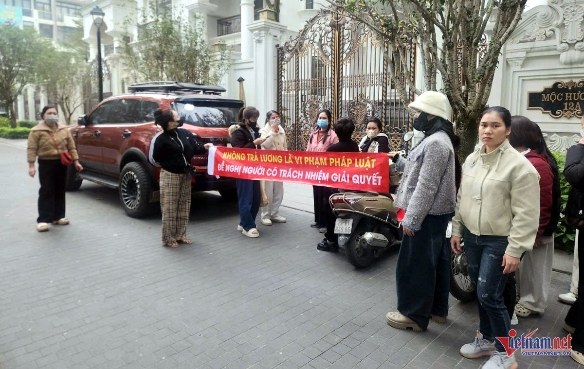 Chiều 4/1, theo ghi nhận của PV VietNamNet, hàng chục người lao động tập trung trước biệt thự của bà Hoàng Hường (SN 1987, tên thật Hoàng Thị Hường) trên phố Lê Đức Thọ, phường Từ Liêm (Hà Nội), yêu cầu được thanh toán lương công ty còn nợ.