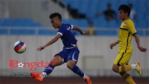 huống Ngọc Hùng băng vào đánh đầu cắt mặt đưa bóng trúng vị trí của thủ
