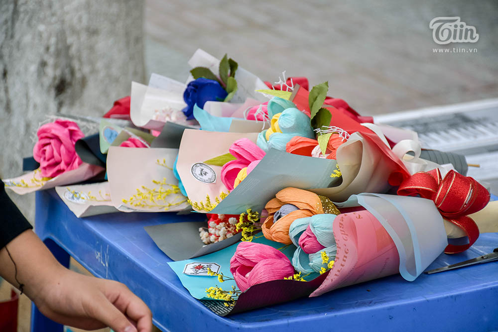 Tuy nhiên, vì có giá bình dân nên các hàng hoa trên đường thường gói khá đơn giản. Chỉ trong tích tắc đã có hàng chục bó hoa được bán đi, một chủ hàng cười toe: 'Tranh thủ nốt buổi sáng rồi về còn nhận quà 8/3, lời lãi gì tầm này'.