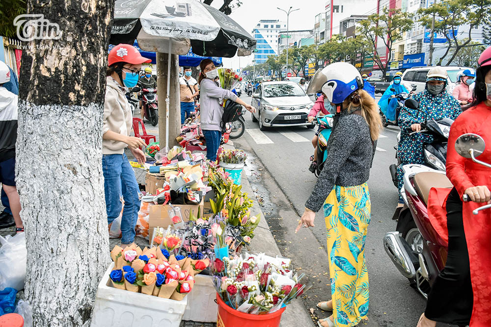 Từ sáng sớm ngày 8/3, sự xuất hiện của những hàng hoa trên các tuyến phố ở Đà Nẵng khiến cho không khí ngày lễ thêm sôi động. Đây được xem là một trong những dịp 'cá kiếm' hiệu quả với những bạn trẻ làm việc tự do sau Tết nguyên đán 2021.