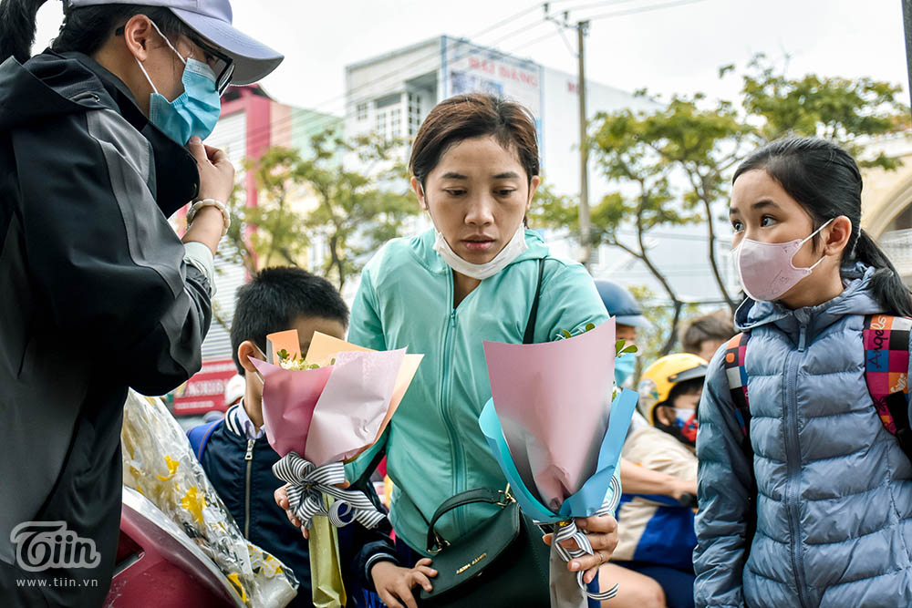 Đặc biệt, tại khu vực các cổng trường, các gian hàng tấp nập khách với tiếng nói cười của người bán người mua. Các phụ huynh nhân ngày lễ đã lựa chọn món quà ý nghĩa dành tặng giáo viên của con em mình. 'Em có thấy toàn chị em phụ nữ đi mua hoa không? Nhìn vậy chứ thật ra ở nhà có quà của chồng rồi!' - chị Hồng (nhà ở Q. Hải Châu) cười nói khi đang chọn lựa những bó hoa đẹp làm quà.