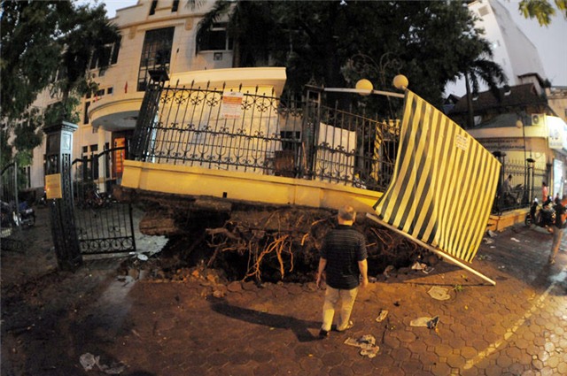 Tương tự, sức mạnh của cơn dông này còn thể hiện ở những hàng ghế đá, thậm chí làbình nước trên mái nhà bị giật tung và hất văng xuống lòng đường.