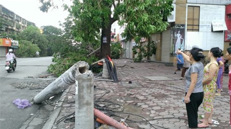 Tại một số tuyến phố, ngoài hàng loạt cây xanh bị bật gốc, nhiều cột đèn trên các tuyến phố cũng bị hạ gục la liệt. Điển hình nhất là phố Phạm Ngọc Thạch – Đống Đa – Hà Nội, tại đây, có tới 3 trụ đèn liền nhau bị gãy gục.