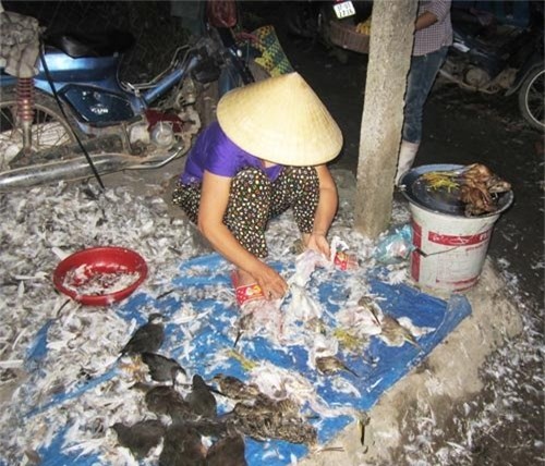 Chim bán ở chợ muốn mua về nấu liền cũng sẵn chim đã được thui vàng. Và người mua muốn tận mắt chứng kiến mặt hàng tươi sống cũng chiều luôn- người bán sẵn sàng phục vụ thượng đế tại chỗ như vặt lông, thui vàng và mổ bụng.