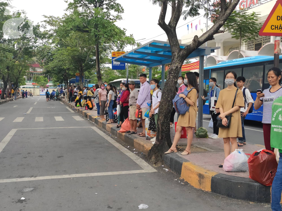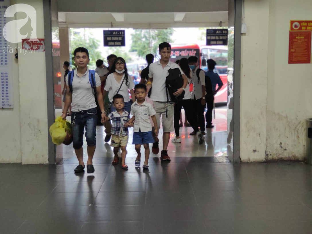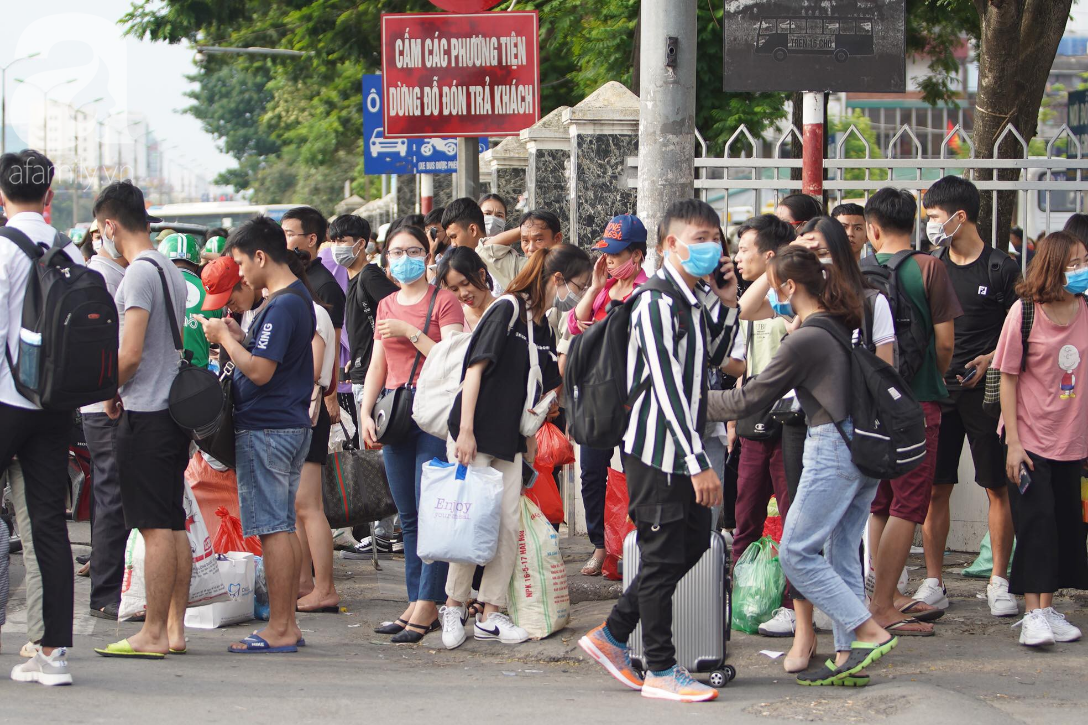 Tại bến xe Nước Ngầm có rất nhiều người trở về Hà Nội từ các tỉnh và đang chờ đợi xe buýt để tiếp tục di chuyển.