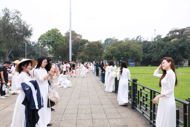 Bạn Khánh Linh (21 tuổi, sinh viên) chia sẻ: "Mình muốn lưu lại những khoảnh khắc đẹp bên bạn bè trong dịp đặc biệt này. Mặc áo dài, chụp ảnh với Lăng Bác, tự nhiên thấy lòng mình lắng lại, biết ơn và tự hào khi được sống trong hòa bình".