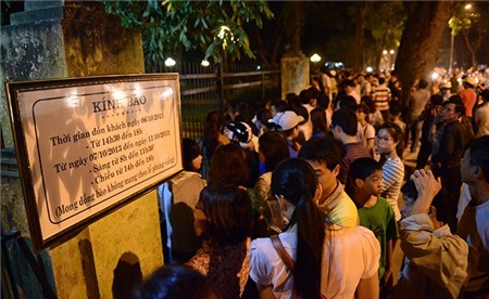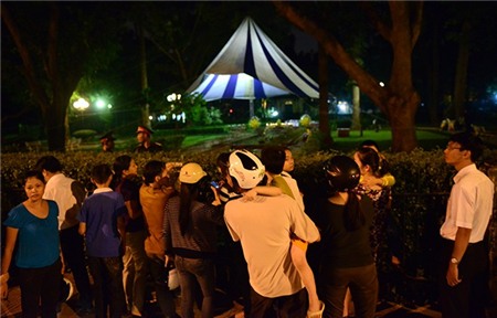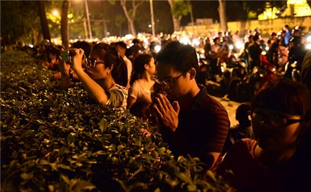 | Mặc dù có thông báo đón khách viếng tang Đại tướng vào 8h sáng hôm sau tuy nhiên buổi tối hôm nay vẫn có đông đảo người dân đến trước cổng nhà Tướng Giáp lặng mình kính viếng. |