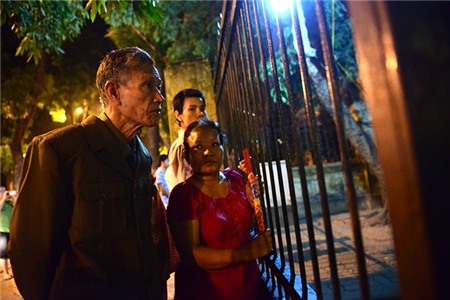 | Cựu chiến binh Bùi Trọng Thuyết, 68 tuổi, quê ở Nam Định, ông từng chiến đấu trong tiểu đoàn 125 đoàn tàu không số đơn vị Hải quân. Bác Thuyết đến viếng Đại tướng từ chiều nhưng chưa chưa được vào, 10h đêm bác Thuyết lại cùng cháu gái đến chờ trước cổng nhà Đại tướng. |