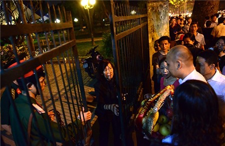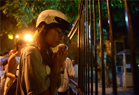 | 20h tối, hàng trăm người dân cùng nhau dành một phút mặc niệm trước cổng nhà Tướng Giáp. Mọi người cùng đồng thanh hô vang lời ủng hộ và biết ơn đến sự nghiệp vì nước vì dân của Đại tướng Võ Nguyên Giáp. |