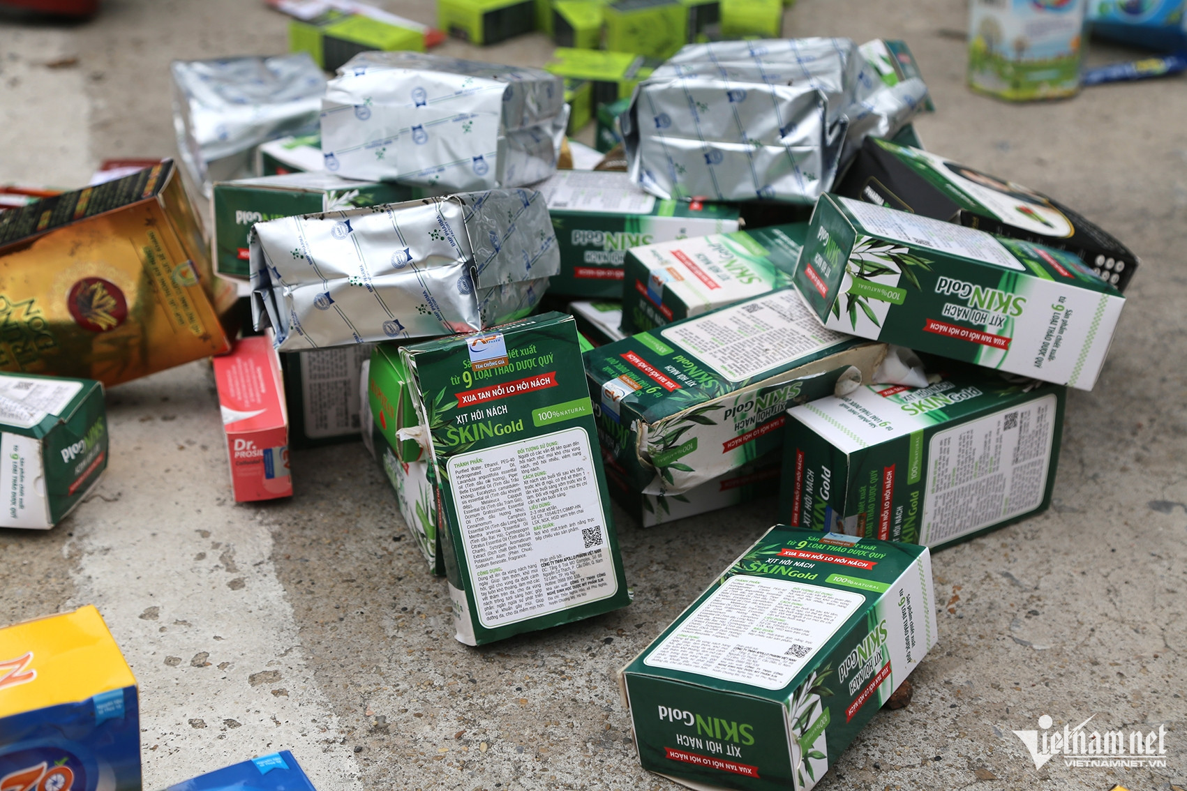 Những hộp thực phẩm chức năng này chưa được sử dụng, chủ yếu là siro, nước yến sào, đông trùng hạ thảo, thực phẩm bổ sung vitamin. Ngoài số thực phẩm chức năng trên, tại bãi rác cơ quan chức năng còn phát hiện thuốc nhuộm tóc, lọ xịt hôi nách...