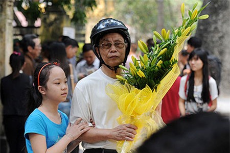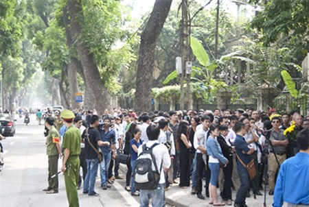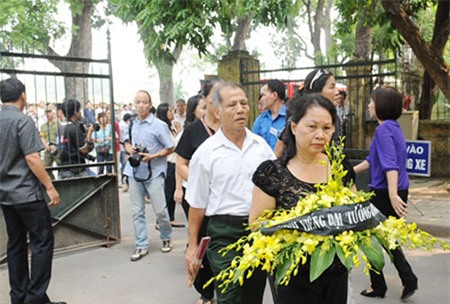 Trước đó hàng tiếng đồng hồ, nhiều người đã bảo nhau tới xếp hàng chờ đợi. Cả đoạn đường dài 200 mét từ cổng nhà Đại tướng tới ngã tư Điện Biên Phủ, người người đứng kín vỉa hè. Trên tay cầm hoa, nến và hương, họ lặng lẽ cùng nhau chờ tới giây phút được vào tận nơi bày tỏ tình cảm của mình, chứng kiến những kỷ vật thân thương một thời gắn với vị tướng toàn tài, đức độ. Trong số hàng trăm gương mặt, già có, trẻ có, ai nấy đều rưng rưng nỗi buồn như sắp chia xa người ruột thịt.
