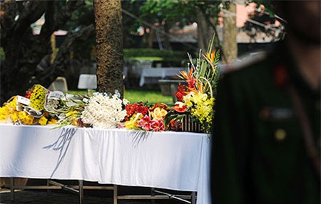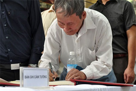 Từng đợt 100 người nối nhau theo hàng một lặng lẽ tiến vào bên trong, tới bên bàn thờ Đại tướng Võ Nguyên Giáp ở giữa nhà. Nhiều người nán lại trút dòng tâm sự và cảm xúc của mình lên cuốn sổ gia đình đã chuẩn bị sẵn.