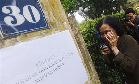 Từ sáng sớm nay, dòng người tiếp tục tới tập trung trước cửa nhà số 30 Hoàng Diệu, nơi Đại tướng cùng gia đình sinh sống cho tới trước khi qua đời vào ngày 4/10 vừa qua. Bên cổng nhà, một phụ nữ đứng khóc, mắt dõi vào bên trong. Chị theo đoàn công tác ra Hà Nội, hay tin Đại tướng mất đã tách đoàn tới đây dâng hoa trước khi quay về TP HCM vào buổi chiều.