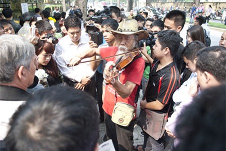Nghệ sĩ đường phố chơi bản nhạc Hồn tử sĩ trước cổng nhà Đại tướng.