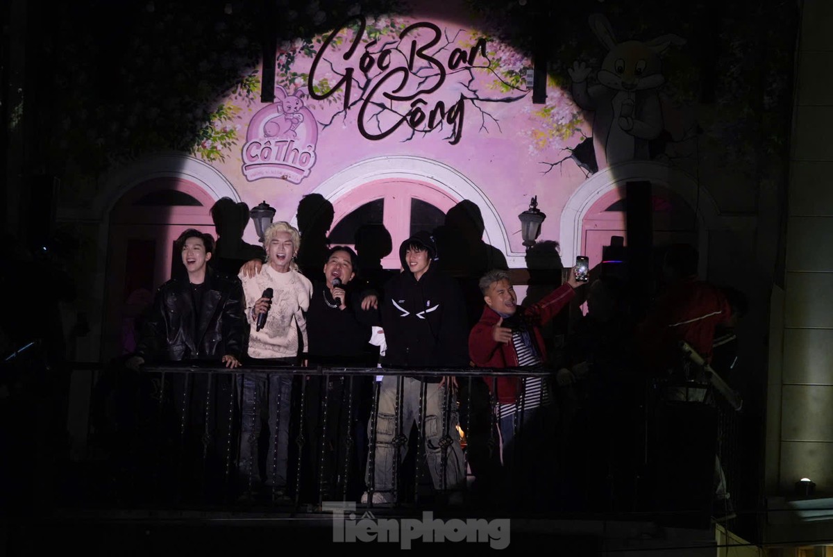 Đám đông hò reo, cổ vũ các nghệ sĩ. Nhiều người vừa đến xem concert Anh trai vượt ngàn chông gai tối 14/12, lại đến góc ban công để nghe các anh tài hát. Chương trình khép lại bằng hit Tìm lại bầu trời của Tuấn Hưng.