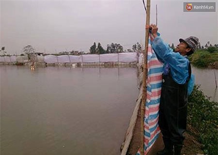 Nhiều hộ dân khác đã phải căng bạt chống rét cho cá. |