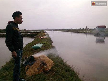 Một số hộ đốt tro quanh ao để xua đi cái lạnh rét. |