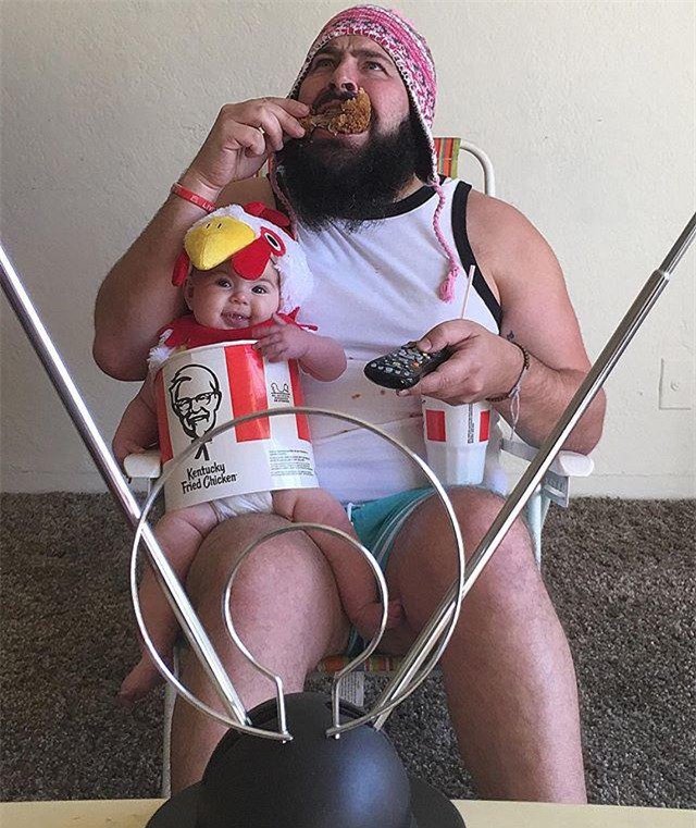 Miếng gà rán này có vẻ to quá, bố không nuốt nổi rồi.