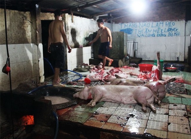 Tại đây, ngành chức năng bắt quả tang hai lò mổ đang tổ chức xẻ thịt heo không có giấy kiểm dịch động vật. Đồng thời phát hiện 600 kg thịt thành phẩm được để trên nền gạch bẩn, nằm lẫn các phế phẩm, phân và chất thải. Hàng chục con heo khác đang được nuôi nhốt gần đó, chờ giết thịt.