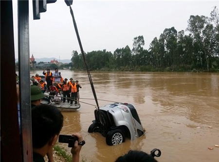 Đến hơn 22h đêm, khi chiếc xe còn cách cầu Hoàng Mai khoảng 70 mét thì do trời tối, nước chảy xiết nên bất ngờ bị chết máy và bị lũ cuốn trôi.