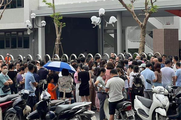 Hàng trăm phụ huynh tập trung tại cổng trường. Ảnh: Cư dân Vinhomes Smart City Tây Mỗ.