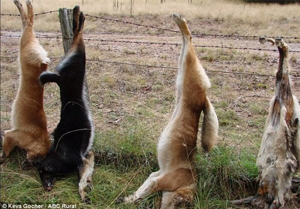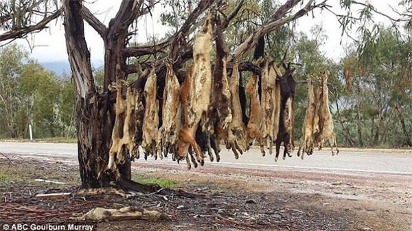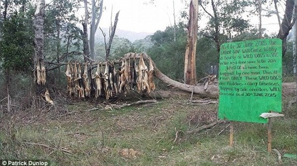 Những tuần qua, rất nhiều cây cối ở thành phố Benambra và Myrtleford đã được chăng đầy xác chó hoang. "Những xác chó được treo ngược lên cây đã trở thành hình ảnh truyền thống ở đây", ông Robert Belcher, 1 nông dân cho biết.