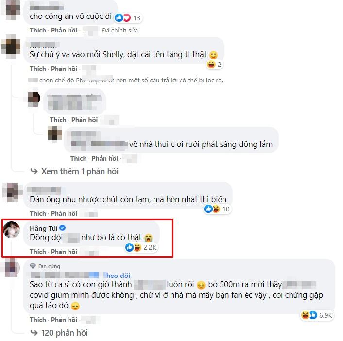 Cụ thể, dưới bài viết bàn luận về chuyện mẹ con Thiên An bị fan nam ca sĩ đe dọa, Hằng "Túi" viết: "Đồng đội *** như bò là có thật". Hành động của Hằng "Túi" được hiểu đứng về phía mẹ con Thiên An, ám chỉ fans của Jack mù quáng.
