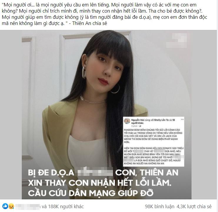 Mẹ con Thiên An bị fans Jack đe dọa.