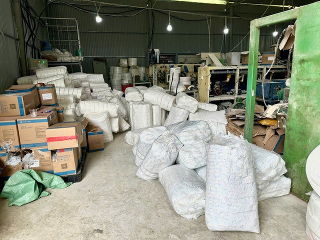 Số lượng hàng hoá tại cơ sở lúc này gồm: 121.700 miếng băng vệ sinh dạng dời mang nhãn hiệu Diana, 135.000 miếng băng vệ sinh dạng dời mang nhãn hiệu Thạch Thảo, 67.500 miếng bỉm giấy nhập lậu mang nhãn hiệu NaNu và trên 10.000 kg nguyên phụ liệu, thành phần chính để sản xuất băng vệ sinh (túi nylon, màng trong, băng dính, keo dán, cuộn giấy…).