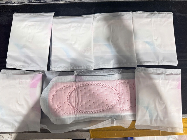 Cận cảnh băng vệ sinh phụ nữ giả thương hiệu được sản xuất bằng công nghệ thô sơ.