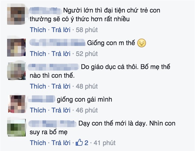 Đúng là phải giáo dục về ý thức ngay từ nhỏ thì mới chuẩn được chứ cứ hô hào cổ động, cố gắng thay đổi những thứ ăn sâu vào máu rồi quả thực là không hề dễ dàng" - bạn Q.M bình luận.