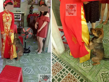 Chú chó như biết cô chủ sắp lên xe hoa về nhà chồng, sắp phải sống xa nó nên nó buồn, nó cứ đi lại quanh quẩn bên cạnh cô chủ rồi thậm chí là ôm chân níu giữ với chút hy vọng nhỏ nhoi. Nhìn ánh mắt tội nghiệp của chú chó, nhiều người đã rơi nước mắt vì thương, vì cảm động trước tình cảm trung thành của con vật ấy.