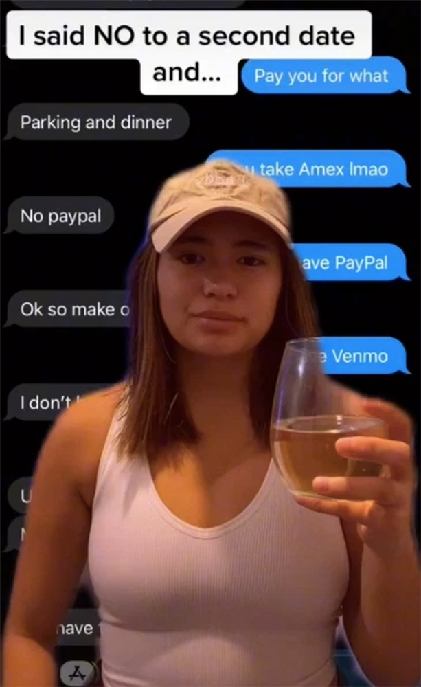 Video TikTok đăng tải câu chuyện là của cô nàng tên Kyle Estella kể về việc mình từ chối đi gặp mặt lần hai với một chàng trai và bị anh ta đòi tiền ăn tối, tiền gửi xe của buổi hẹn hò lần trước.