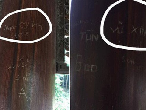 "Ngọc yêu Đông", "Vũ xinh" hay thậm chí là cả những hình vẽ phản cảm, rất nhiều "bút tích" bị những vị khách vô ý thức....