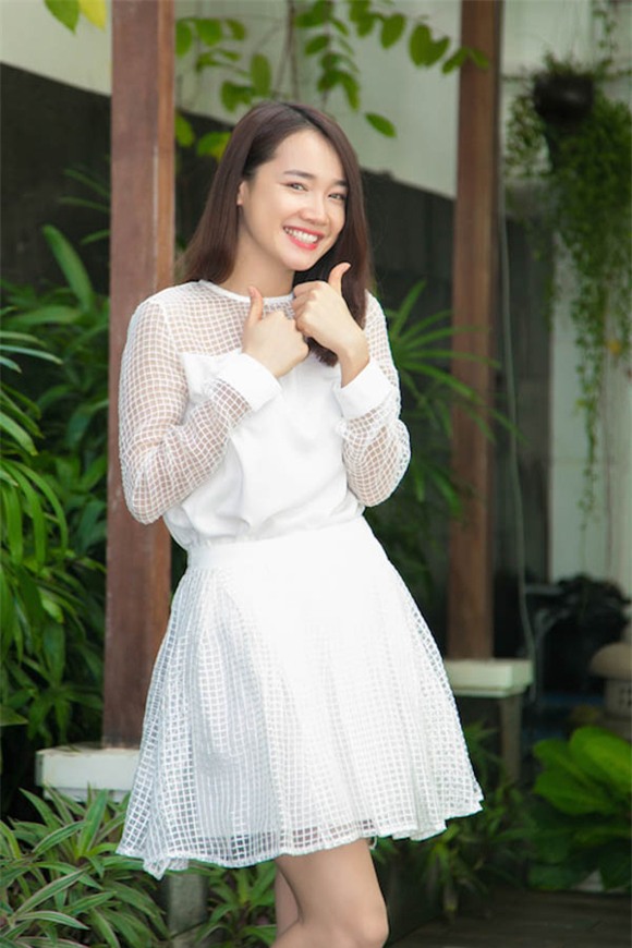 Gam màu trắng rất phù hợp với phong cách thời trang trong sáng của Nhã Phương.