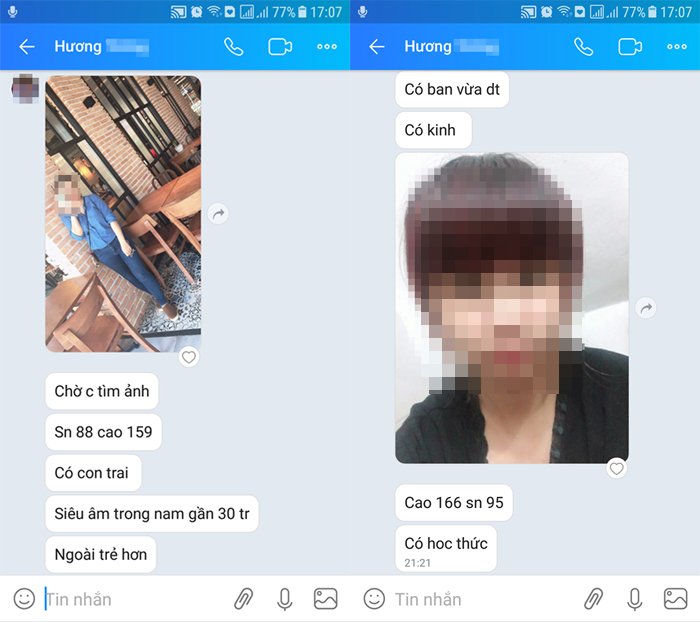 Chị K. cho hay, sau khi thỏa thuận sẽ mua với giá 30 triệu đồng/lượt, chị được “mối” gửi cho khá nhiều ảnh và thông tin của các “ứng viên”. Bàn bạc với chồng, chị quyết định chọn một người tên T. sinh năm 1988 ở Thanh Hóa.