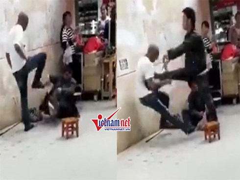Thấy người ăn xin bị đạp, tát liên tiếp, nam thanh niên bất bình liền lao tới tung cước đạp trúng ngực người nước ngoài khiến ông ta ngã dúi dụi vào tường. Sự việc xảy ra trên một con phố nhỏ tại Quảng Châu, Trung Quốc.
