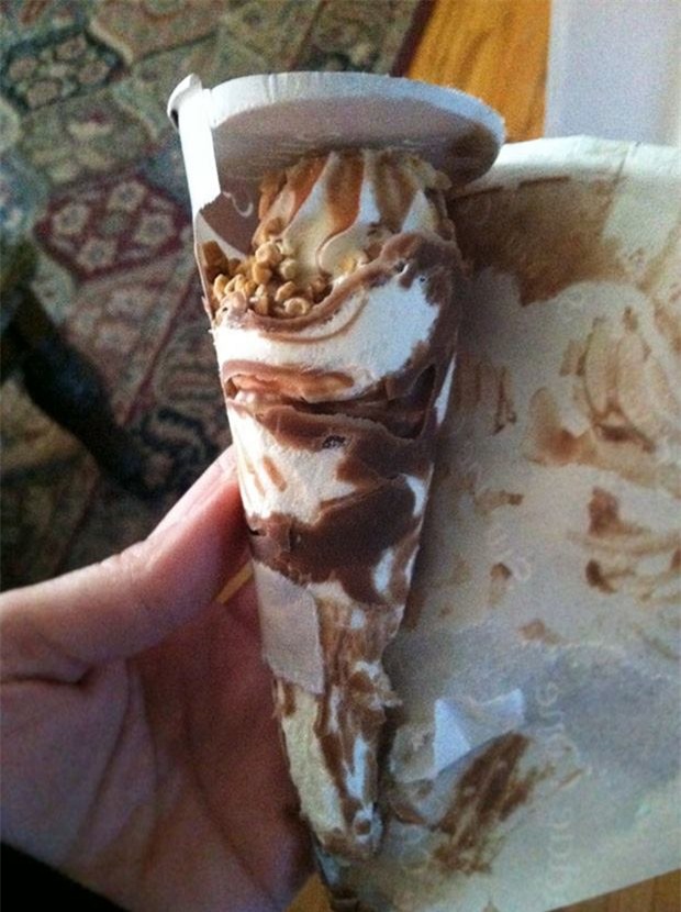 Chiếc kem này cũng vậy, tại sao nó lại hụt mất hẳn phần đầu, phần to nhất???