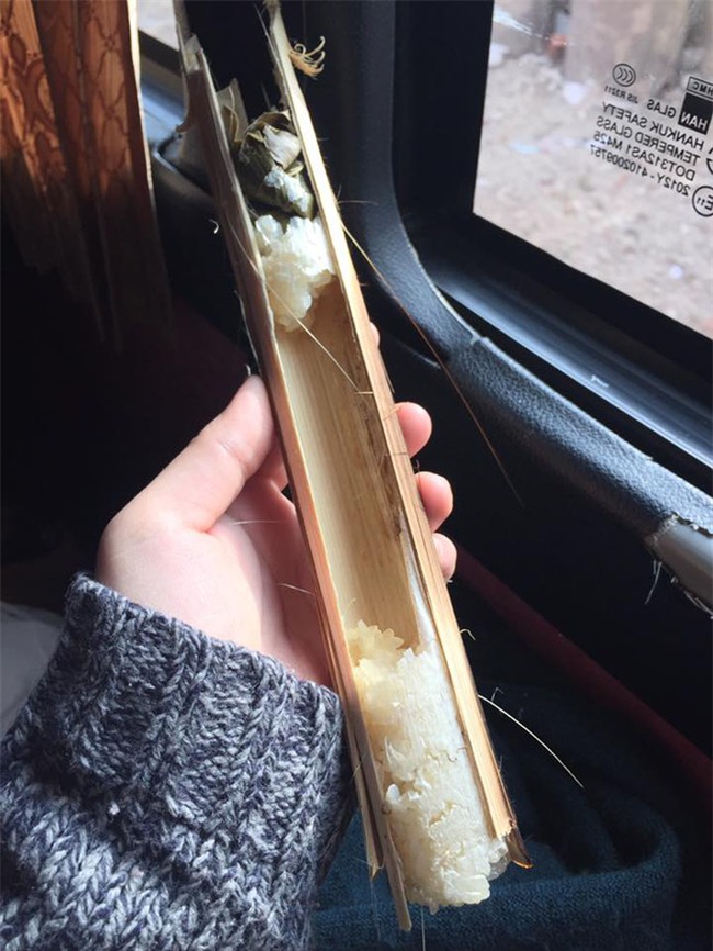 Chắc người bán hết gạo nên đành nhét mỗi 2 đầu ống tre. Nhiều người đặt nghi vấn chủ nhân đã moi ruột ra ăn trước khi chụp ảnh, song nhìn kỹ thì đúng là khúc giữa chẳng có dấu hiệu gì chứng tỏ ở đó đã - từng - có - cơm.