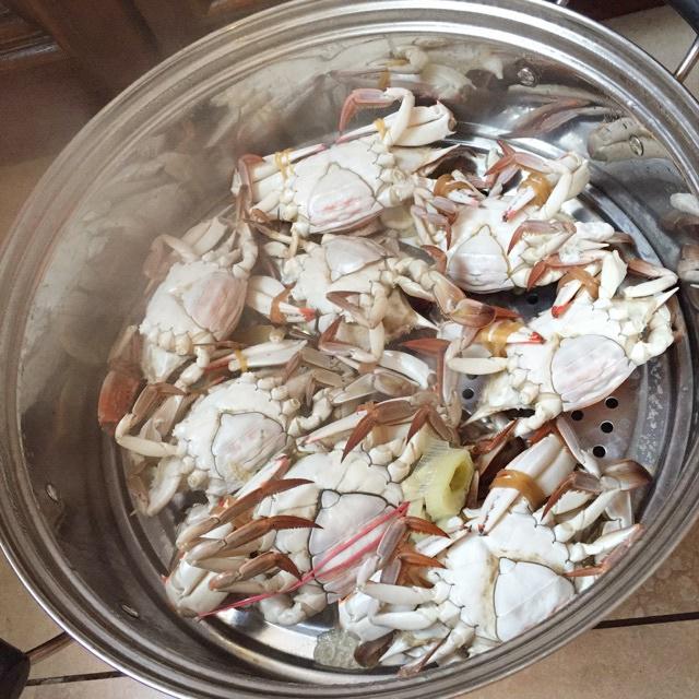 - Bật lửa lớn rồi hấp cua. Sau khi nước sôi, hấp của thêm 5-8 phút tùy vào kích cỡ của con cua. Ngoài ra, việc cho hạt tiêu và gừng vào khi hấp cua giúp cua vừa thơm ngon mà thịt cũng mềm ngọt hơn, chẳng có mùi tanh. Khi ăn, chấm cua với tương ớt hoặc muối tiêu chanh pha mù tạt.