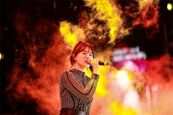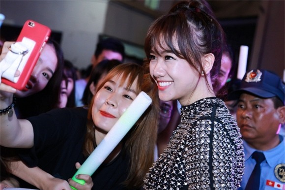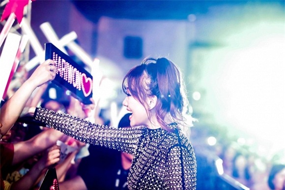 Dù say sưa biểu diễn, nữ ca sĩ vẫn không quên giao lưu cùng fans