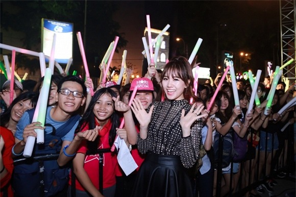 Giọng ca “Anh cứ đi đi” tỏa sáng nhờ thần thái tự tin, cuốn hút và khả năng khuấy động sân khấu duyên dáng. Mặc dù chương trình được truyền hình trực tiếp nhưng Hari vẫn không ngần ngại rời sân khấu xuống tận nơi giao lưu, chụp hình và hòa giọng cùng các fan của mình. Gần 3000 khán giả đã không thể ngồi yên với phần trình diễn của Hari. Khán giả nhiệt tình hát theo Hari các ca khúc mà cô thể hiện: Hương đêm bay xa, Yêu không hối hận và Anh cứ đi đi.