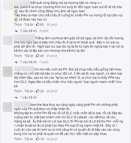 Phạm Hương cho rằng Lan Khuê đang muốn "trả thù" mình sau khi cô đã loại đi 3 chiến binh của đội Hoa khôi Áo dài và sợ mất lòng Hà Hồ. Có vẻ như Phạm Hương quên rằng, cả ba lần cô đều loại thí sinh đội Lan Khuê thay vì thí sinh đội Hà Hồ thì trong mắt khán giả cô mới chính là người sợ và cả nể đàn chị.