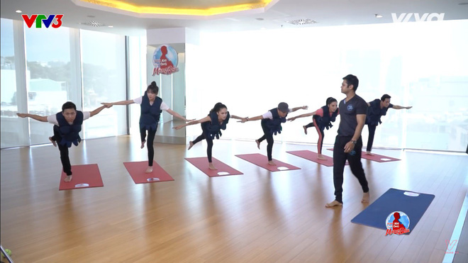 Ở động tác Yoga đầu tiên là đưa chân lên sau lưng, cặp Trường Giang – Hương Giang đã làm rất tốt. Họ giữ vững thế đứng một chân trong thời gian lâu nhất nên được cho điểm cao nhất. Trường Giang còn vui sướng kêu lên: "Một chữ cũng là thầy, nửa chữ cũng là thầy".