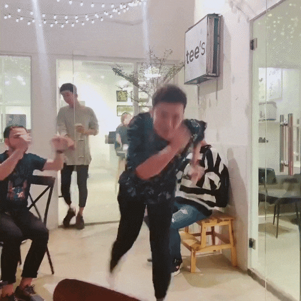 Công cuộc đốt calo chỉ dừng lại khi một người bạn vén áo tạo dáng khoe body với Trấn Thành. Nam danh hài lúc này chỉ biết "tẽn tò" ôm cửa, quỳ gối cười trừ trong sự hào hứng phấn khích của bà xã Hari Won và các bạn bè đồng nghiệp.