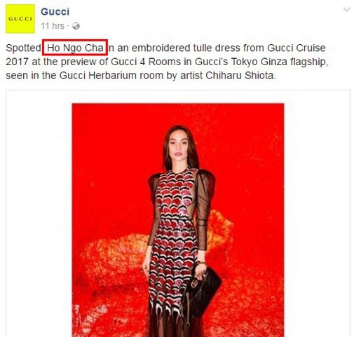Hồ Ngọc Hà là một trong số hiếm hoi những khách mời tham dự sự kiện buổi Triển lãm nghệ thuật Gucci 4 Rooms được vinh danh trên trang chủ Instagram cũng như Facebook của hãng. Điều này khiến cô và các fans Việt vô cùng tự hào.