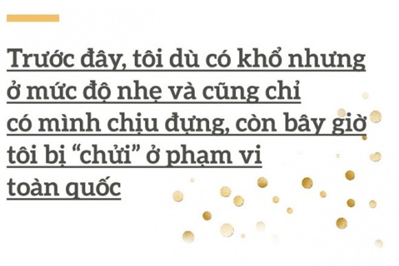 - Trước đây, tôi dù có khổ nhưng ở mức độ nhẹ và cũng chỉ có mình chịu đựng, còn bây giờ tôi bị “chửi” ở phạm vi toàn quốc nên tất nhiên sẽ nặng đầu hơn chứ. Chính điều này dẫn đến những suy nghĩ tiêu cực.