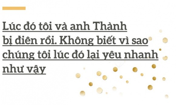 - Nói chung, lúc đó tôi và anh Thành bị điên rồi. Không biết vì sao chúng tôi lúc đó lại yêu nhanh như vậy.