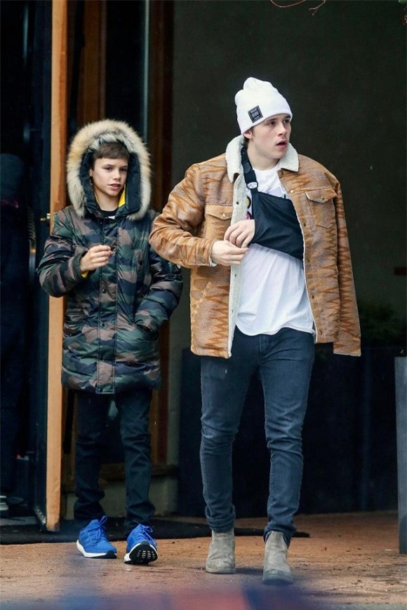 Brooklyn bị thương ở tay sau khi đi trượt tuyết với gia đình