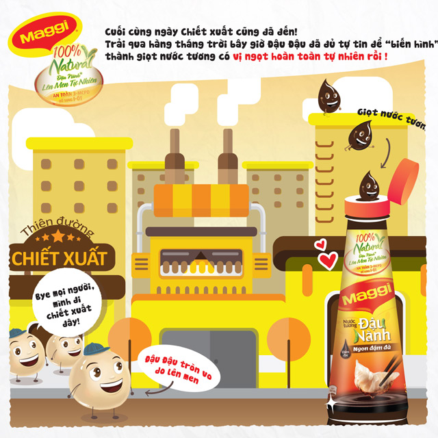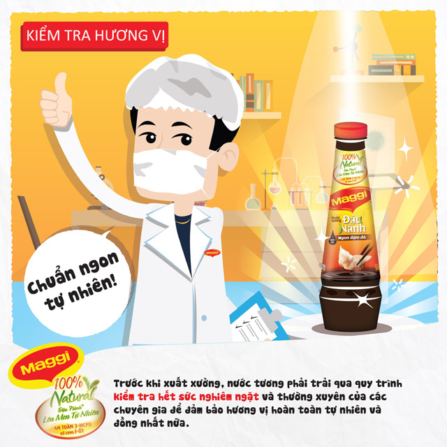 Qui trình 6 bước ở trên, cũng chính là qui trình sản xuất nước tương MAGGI. Đây là cách làm ra những chai nước tương dậy hương đậu nành với vị ngọt thanh dịu tự nhiên, sóng sánh đậm đà.